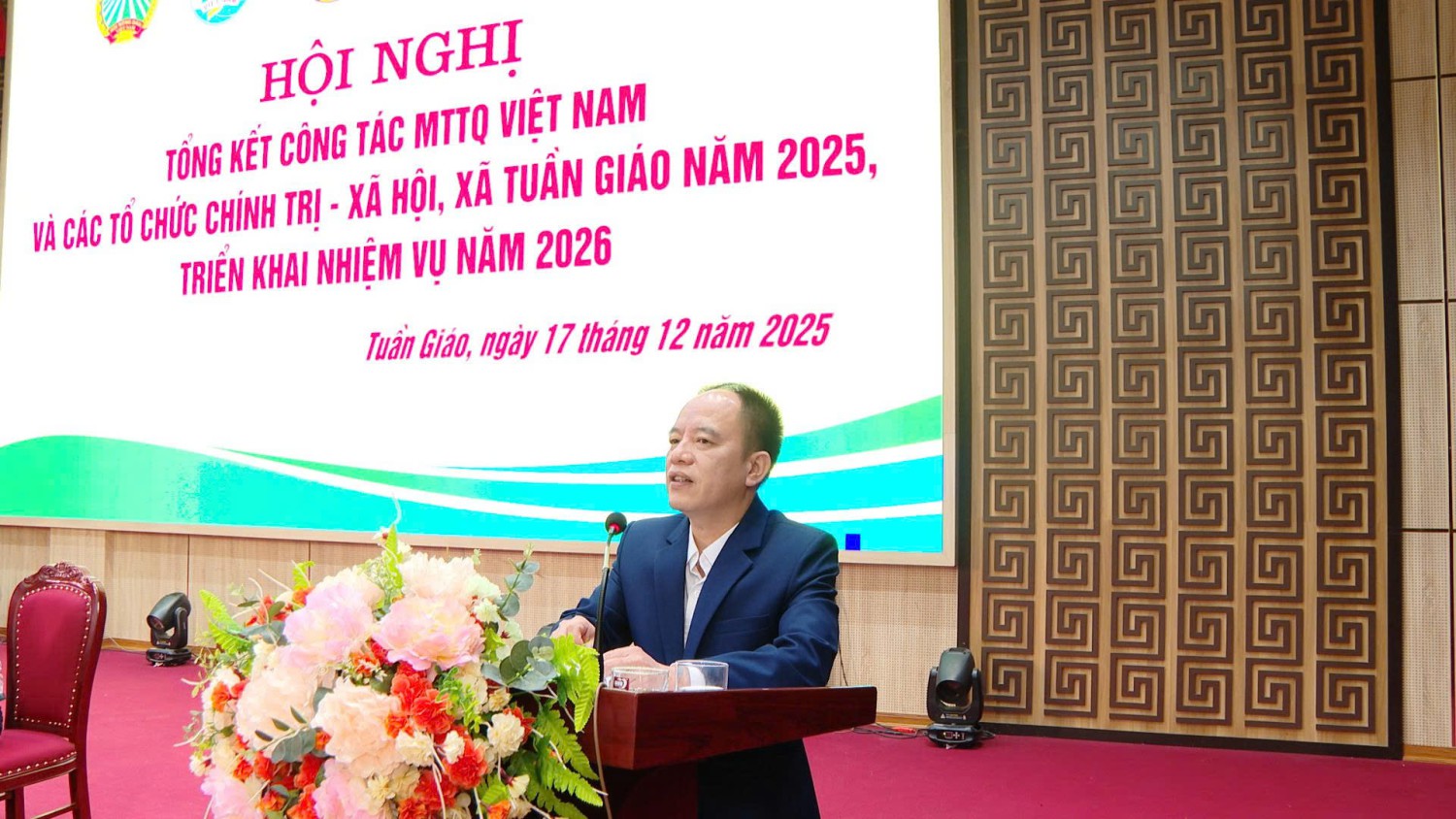 Tại hội nghị, Đại diện lãnh đạo Ủy ban MTTQ Việt Nam xã đã trình bày báo cáo kết quả công tác của MTTQ và các tổ chức chính trị - xã hội xã Tuần Giáo năm 2025. Báo cáo nêu rõ những kết quả nổi bật trong công tác tuyên truyền, vận động đoàn viên, hội viên và Nhân dân thực hiện tốt các chủ trương của Đảng, chính sách, pháp luật của Nhà nước; Phát huy vai trò giám sát, phản biện xã hội; Triển khai hiệu quả các phong trào thi đua yêu nước, các cuộc vận động lớn do MTTQ các cấp phát động.