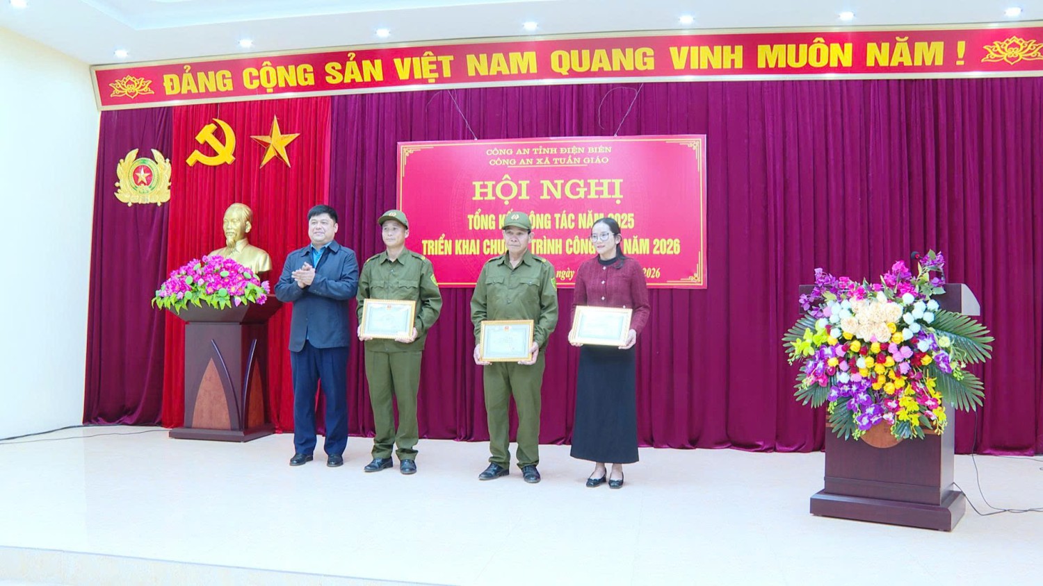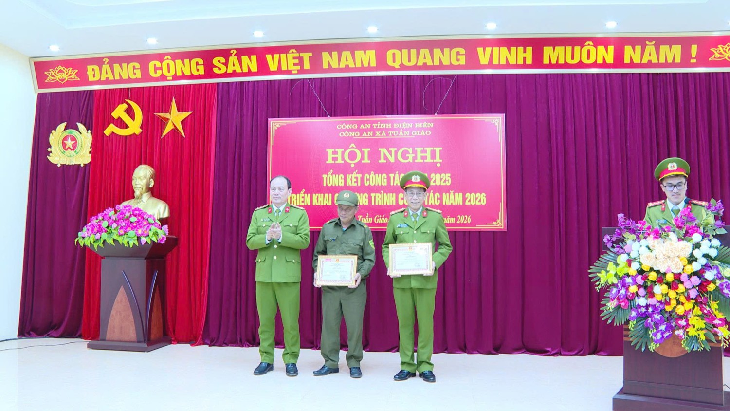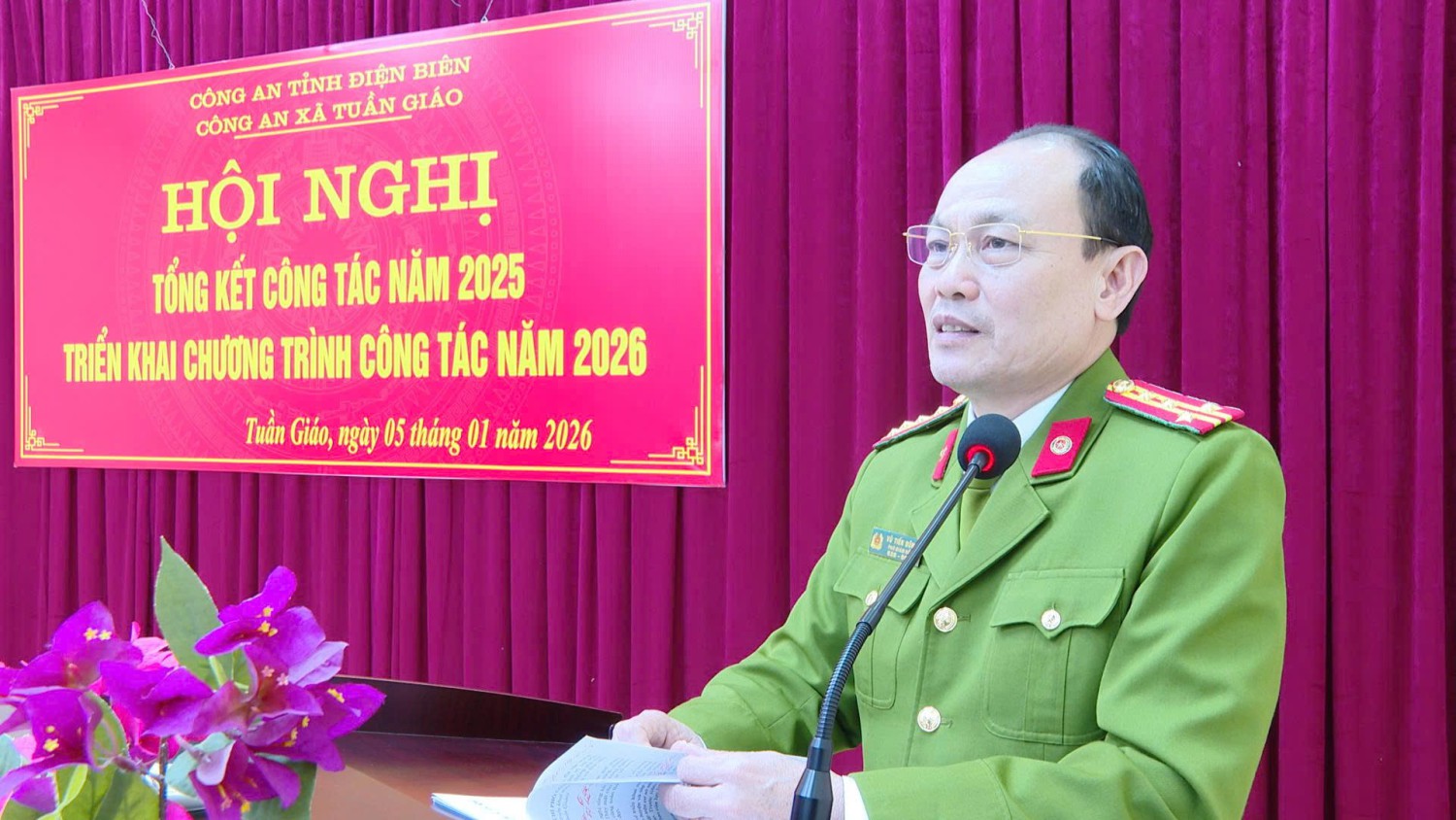 Phát biểu chỉ đạo tại hội nghị, đồng chí Đinh Bảo Dũng – Tỉnh uỷ viên, Bí thư Đảng uỷ - Chủ tịch HĐND xã Tuần Giáo; đồng chí Đại tá Vũ Tiến Dũng – Phó Giám đốc Công an tỉnh đã ghi nhận, biểu dương những nỗ lực của tập thể Công an xã Tuần Giáo trong năm 2025; đồng thời yêu cầu đơn vị thẳng thắn nhìn nhận những tồn tại, hạn chế để có giải pháp khắc phục hiệu quả. Nhấn mạnh năm 2026 là năm diễn ra cuộc bầu cử đại biểu Quốc hội khóa XVI và đại biểu HĐND các cấp nhiệm kỳ 2026–2031, các đồng chí đề nghị lực lượng Công an xã tập trung bảo đảm an ninh, an toàn tuyệt đối cho bầu cử; tiếp tục đẩy mạnh công tác phòng, chống tội phạm, nhất là phòng, chống ma túy gắn với xây dựng “xã không ma túy”; Đồng thời, Công an xã tiếp tục chủ động nắm chắc tình hình, làm tốt công tác tham mưu cho cấp ủy, chính quyền địa phương; tập trung đấu tranh phòng, chống các loại tội phạm, bảo đảm an ninh trật tự, phục vụ hiệu quả nhiệm vụ phát triển kinh tế – xã hội của địa phương.