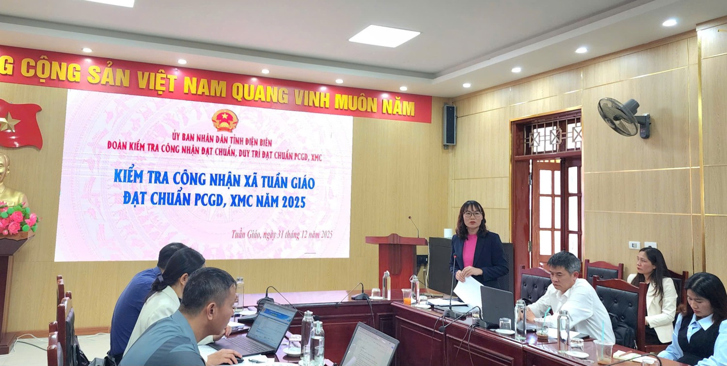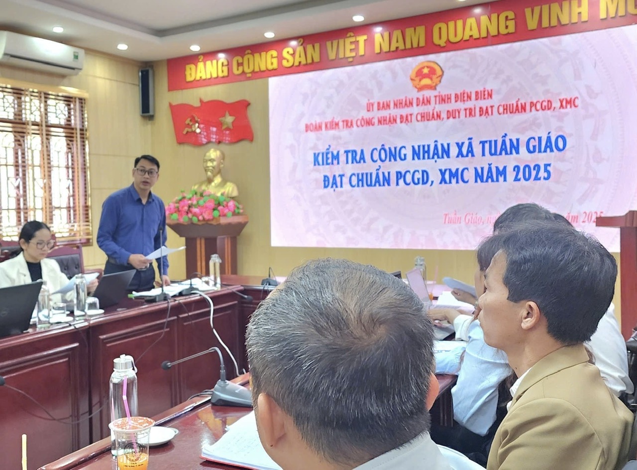 Tại buổi làm việc, Ban Chỉ đạo phổ cập giáo dục, xóa mù chữ xã Tuần Giáo đã báo cáo tình hình tổ chức thực hiện, kết quả công tác phổ cập giáo dục, xóa mù chữ năm 2025 và phương hướng, nhiệm vụ năm 2026. Theo đó, toàn xã hiện có 16 cơ sở giáo dục từ Mầm non đến THPT và giáo dục thường xuyên, với 222 nhóm, lớp và 7.093 học sinh. Mạng lưới trường lớp được củng cố, phân bố hợp lý, đáp ứng tương đối đầy đủ nhu cầu học tập của Nhân dân; 15/16 trường đạt chuẩn quốc gia, tỷ lệ 93,75%; trong đó: 04/05 trường Mầm non, tỷ lệ 80%; 06/06 trường Tiểu học, tỷ lệ 100%; 03/03 trường THCS, tỷ lệ 100%; 02/02 trường THPT và PTDTNT THPT, tỷ lệ 100%.