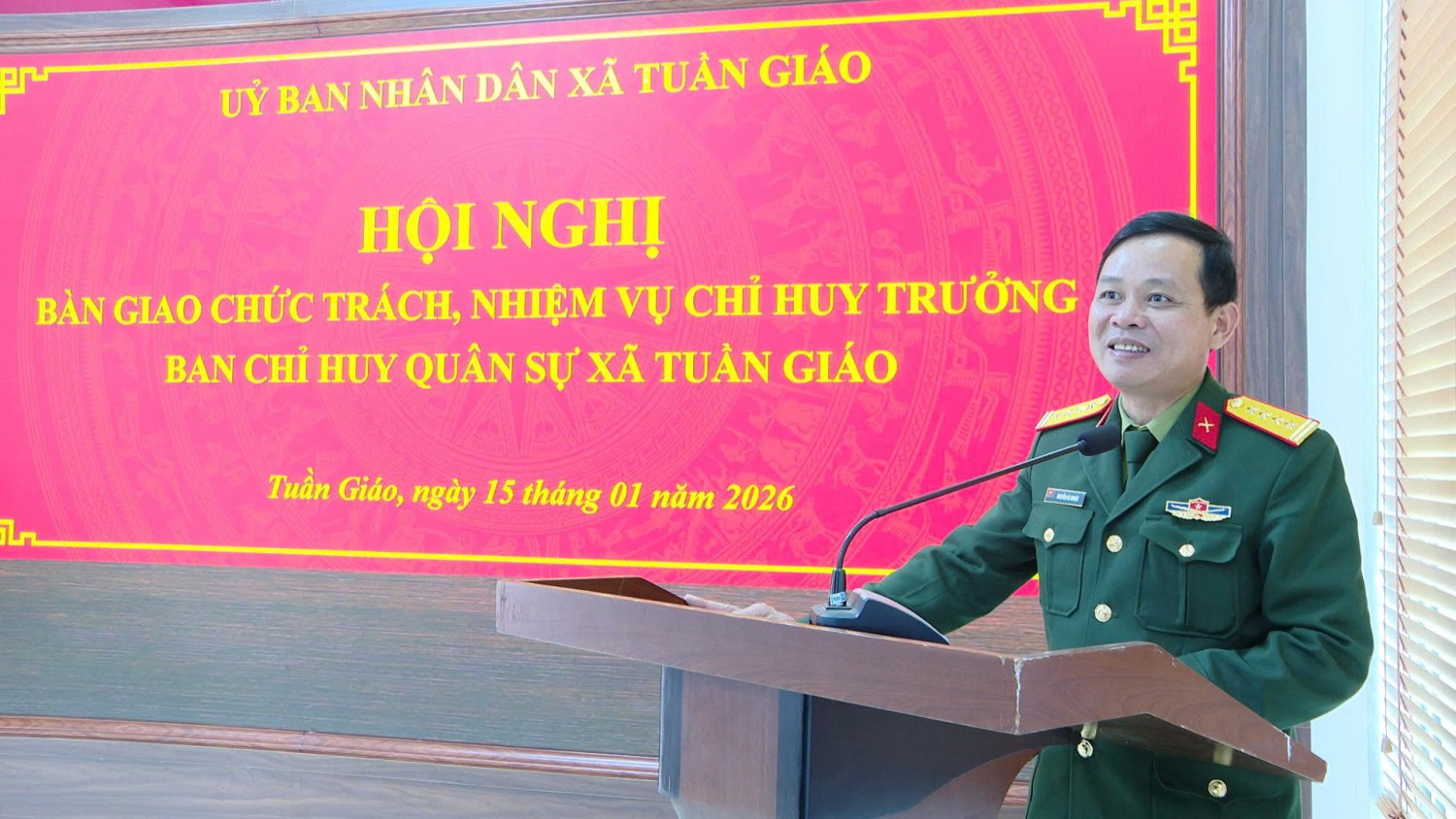 Thay mặt lãnh đạo xã Tuần Giáo, đồng chí Nguyễn Duy Lâm- Phó Bí thư Thường trực Đảng uỷ xã nhấn mạnh: việc bàn giao chức trách, nhiệm vụ là yêu cầu cần thiết nhằm bảo đảm tính liên tục, ổn định trong công tác lãnh đạo, chỉ đạo nhiệm vụ quốc phòng – quân sự tại địa phương. Đồng chí đề nghị Ban Chỉ huy Quân sự xã tiếp tục đoàn kết, chủ động, hoàn thành tốt các nhiệm vụ được giao, góp phần giữ vững an ninh chính trị, trật tự an toàn xã hội trên địa bàn.