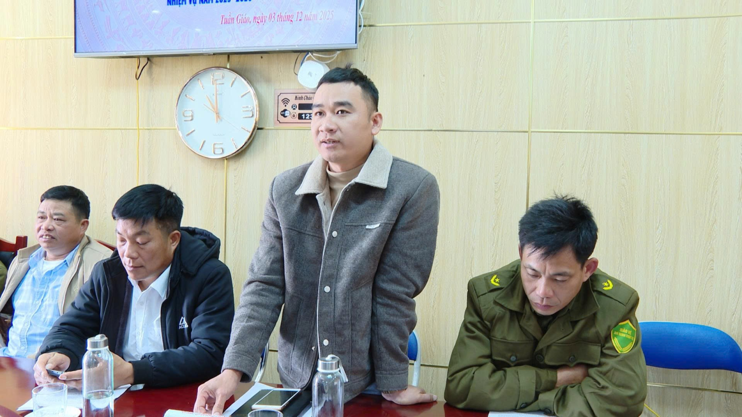 Sáng ngày 03/12, UBND xã Tuần Giáo tổ chức Hội nghị Tổng kết công tác quản lý bảo vệ rừng, phòng cháy, chữa cháy rừng mùa khô 2024-2025 và triển khai phương hướng, nhiệm vụ năm 2025- 2026. Dự và chủ trì hội nghị, đồng chí Đinh Bảo Dũng – Tỉnh uỷ viên, Bí thư Đảng uỷ - Chủ tịch HĐND xã; Đồng chí Quàng Văn Cương – Phó Bí thư Đảng uỷ, Chủ tịch UBND xã; Lãnh đạo Hạt Kiểm lâm Tuần Giáo; Lãnh đạo Công an xã; Lãnh đạo Ban Chỉ huy Quân sự xã; Đại diện Lãnh đạo, chuyên viên phụ trách Phòng Kinh tế; Đại diện lãnh đạo Phòng Văn hóa - Xã hội; Lãnh đạo Trung tâm Dịch vụ Tổng hợp; Các đồng chí Trưởng các khối/bản; Các đồng chí Kiểm lâm địa bàn.