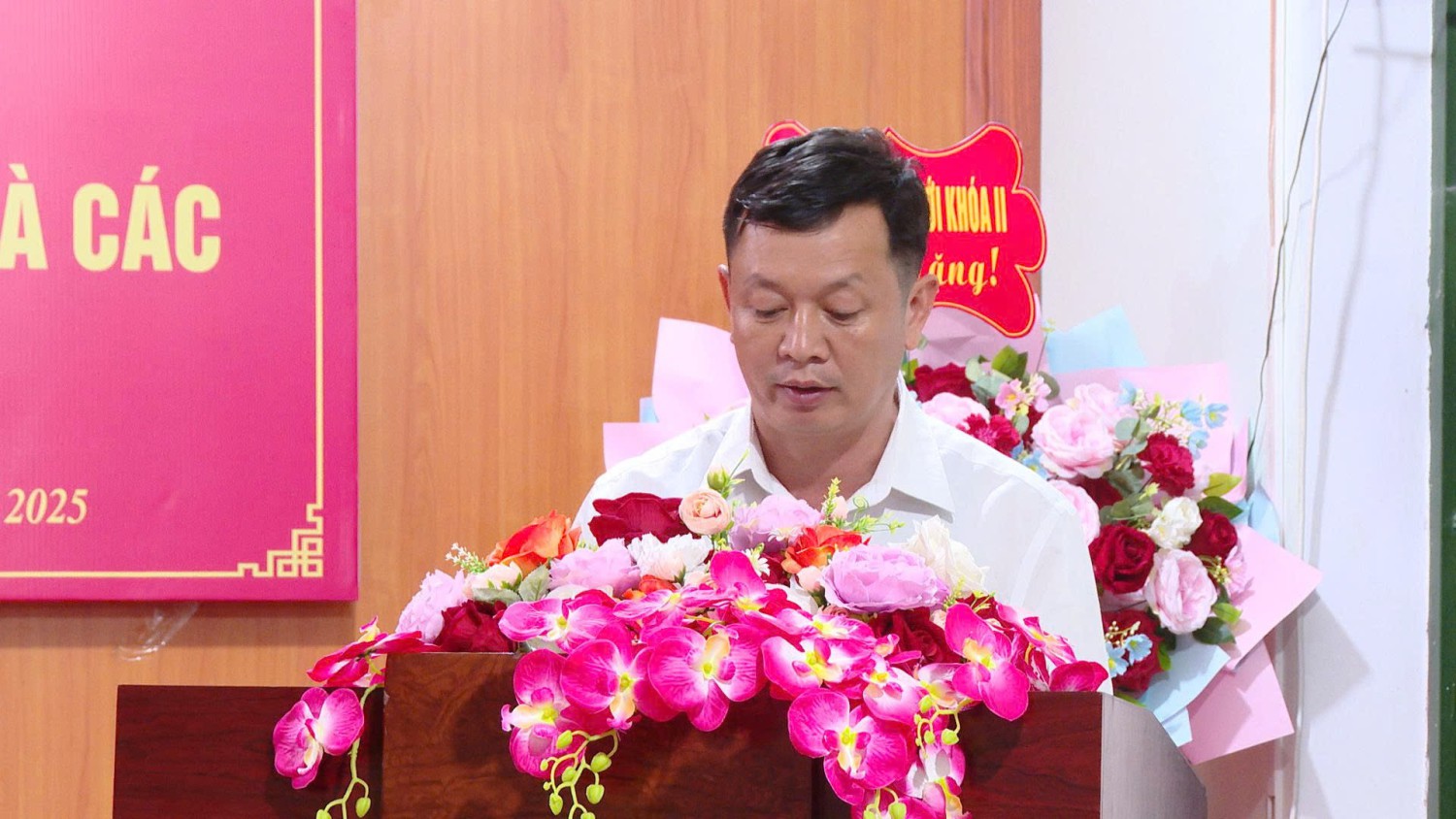 Đồng chí Nguyễn Duy lâm - Phó Bí thư Đảng ủy xã phát biểu tại lễ khai giảng lớp bồi dưỡng