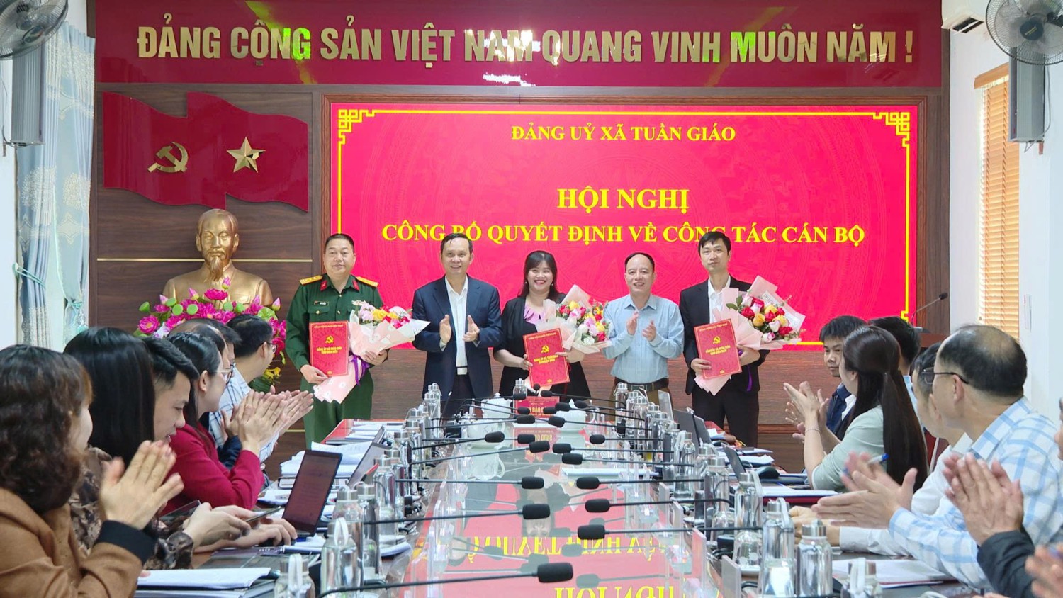 Cũng tại Hội nghị, Đảng uỷ xã đã công bố và trao Quyết định của Tỉnh uỷ Điện Biên Chỉ định đồng chí Lò Văn Tiếng- Chỉ huy trưởng Ban chỉ huy quân sự xã tham gia Ban chấp hành Đảng bộ xã Tuần Giáo, nhiệm kỳ 2025-2030; Quyết định chuẩn y Uỷ viên, Phó chủ nhiệm Uỷ ban Kiểm tra Đảng uỷ xã Tuần Giáo đối với đồng chí Cao Xuân Lâm- Uỷ viên BCH Đảng bộ xã, Phó Giám đốc Trung tâm Chính trị xã Tuần Giáo; Quyết định của Ban Thường vụ Đảng uỷ xã Tuần Giáo điều động, bổ nhiệm giữ chức vụ Giám đốc Trung tâm chính trị xã đối với đồng chí Lò Hồng Nhung, Ủy viên Ban Chấp hành, Phó Chủ nhiệm Uỷ ban kiểm tra Đảng ủy.