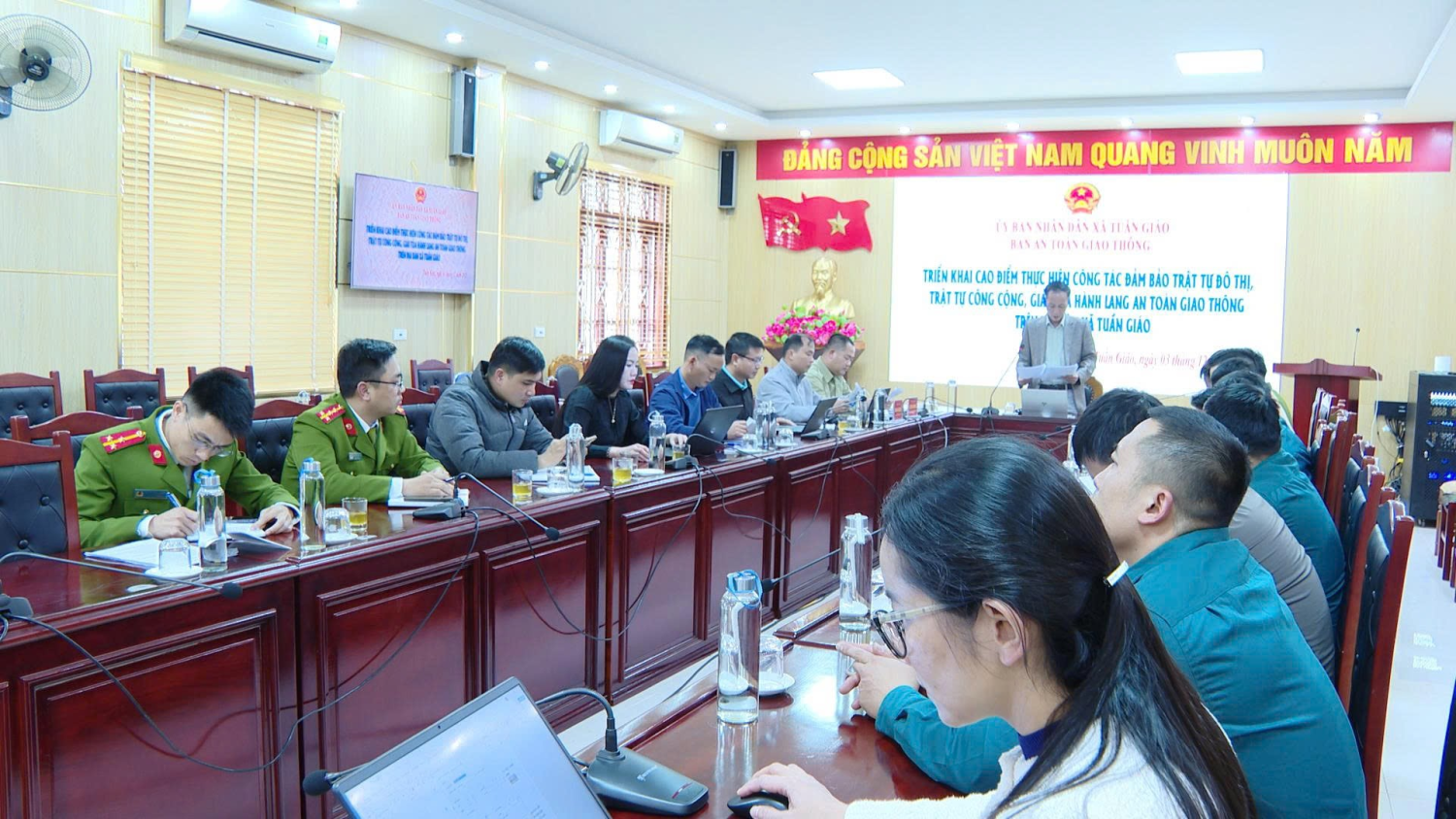 Dự và chủ trì cuộc họp, đồng chí Phạm Hữu Chiến- UVBTV, Phó Chủ tịch UBND xã; Các đồng chí trong Ban An toàn giao thông xã theo Quyết định số 508/QĐ-UBND ngày 26/11/2025 của UBND xã Tuần Giáo; Các đồng chí thực hiện theo Kế hoạch số 800/KH-UBND ngày 17/10/2025 của UBND xã Tuần Giáo; Đại diện chỉ huy Trạm Cảnh sát giao thông Tuần Giáo.
