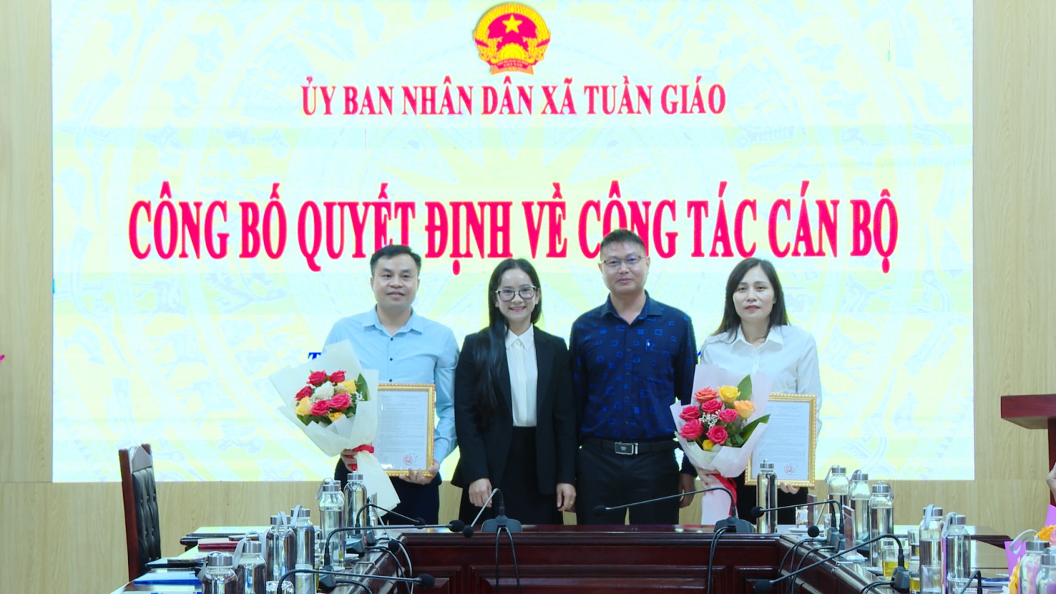 Sáng ngày 03/11, UBND xã Tuần Giáo tổ chức Công bố Quyết định về công tác cán bộ. Dự buổi lễ, có đồng chí Nguyễn Duy Lâm- Phó Bí thư Thường trực Đảng ủy xã; Đồng chí Nguyễn Quyết Thắng-UVBTV, Phó Chủ tịch UBND xã; Đại diện lãnh đạo Ban Xây Đảng; Lãnh đạo, chuyên viên Văn phòng HĐND và UBND xã; Lãnh đạo, chuyên viên Phòng Văn hóa - Xã hội; Lãnh đạo, tổ trưởng chuyên môn các trường: THCS Tuần Giáo, Mầm non Quài Nưa, Mầm non Sơn Ca.