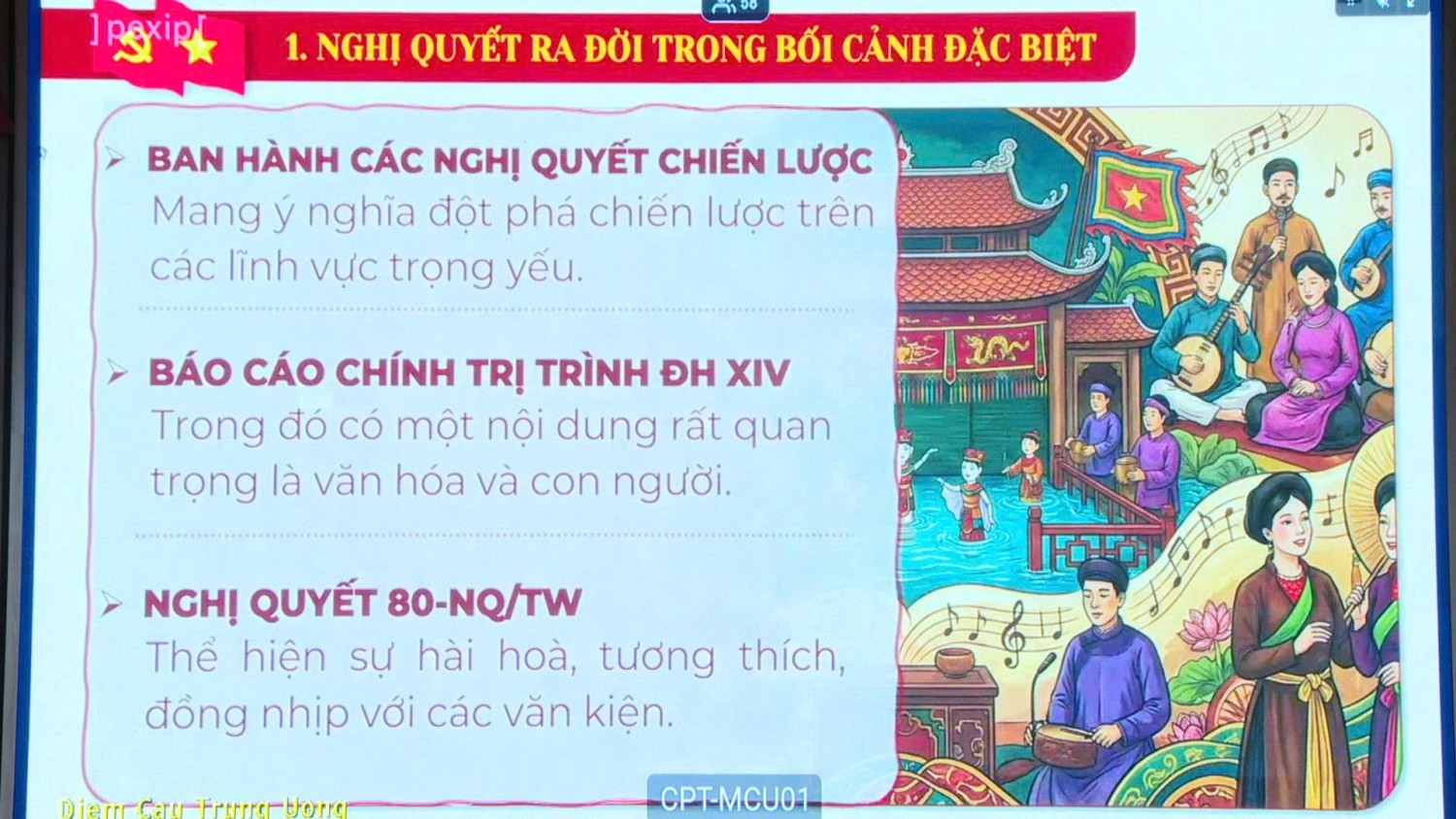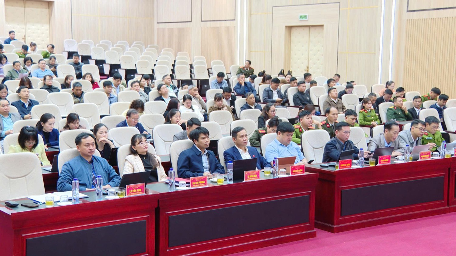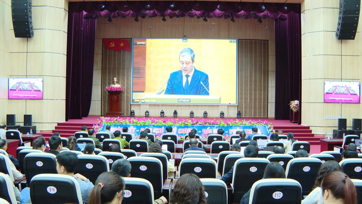 Theo chương trình, tại Hội nghị, các đại biểu nghe đồng chí Trịnh Văn Quyết, Ủy viên Bộ Chính trị, Bí thư Trung ương Đảng, Trưởng ban Tuyên giáo và Dân vận Trung ương thông tin chuyên đề "Nội dung trọng tâm, cốt lõi của Nghị quyết số 80-NQ/TW ngày 7-1-2026 của Bộ Chính trị về phát triển văn hóa Việt Nam"; đồng chí Nguyễn Thanh Nghị, Ủy viên Bộ Chính trị, Bí thư Trung ương Đảng, Trưởng ban Chính sách, chiến lược Trung ương thông tin chuyên đề "Nội dung trọng tâm, cốt lõi của Nghị quyết số 79-NQ/TW ngày 6-1-2026 của Bộ Chính trị về phát triển kinh tế Nhà nước"; Phó thủ tướng Thường trực Chính phủ Nguyễn Hòa Bình thông tin chuyên đề "Chương trình hành động thực hiện Nghị quyết số 79-NQ/TW và Nghị quyết số 80-NQ/TW của Bộ Chính trị".