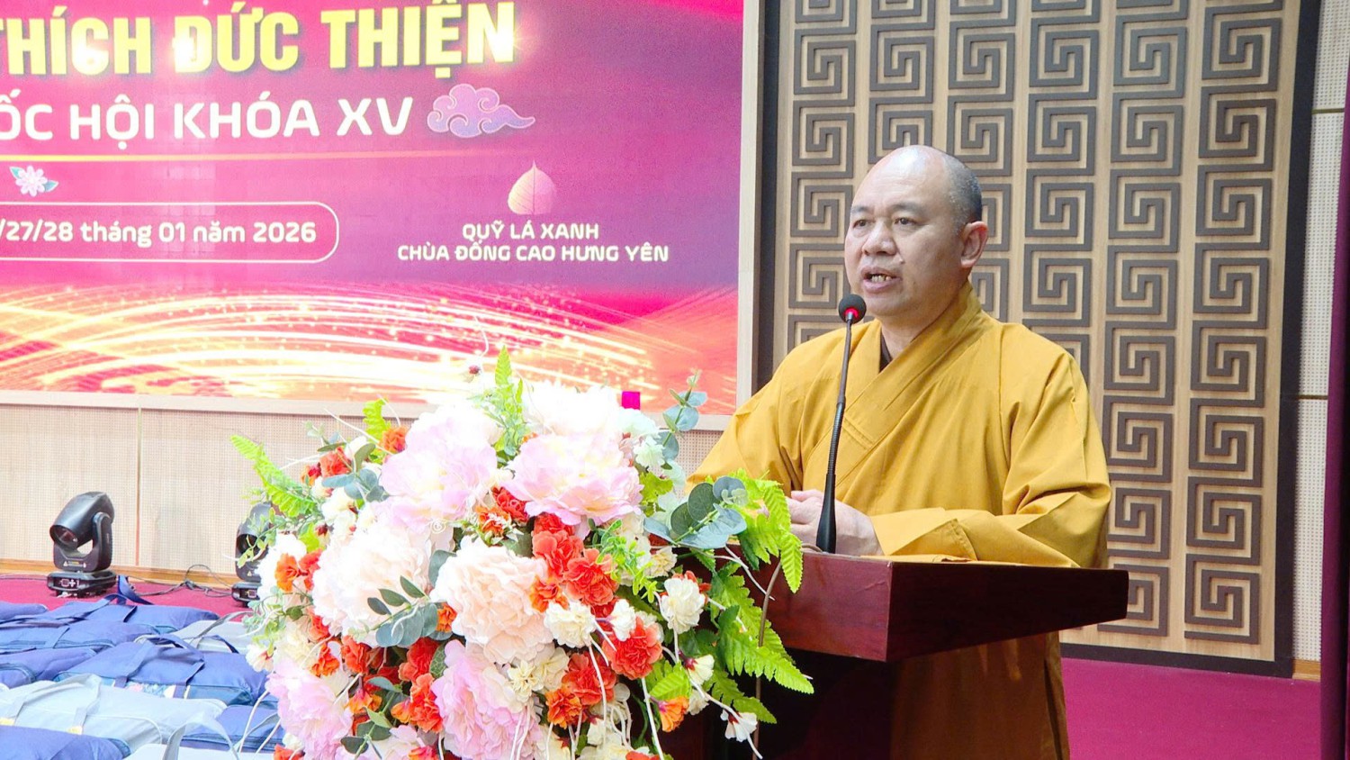 Phát biểu tại buổi trao quà, Thượng tọa Thích Đức Thiện nhấn mạnh, hoạt động chăm lo Tết cho người nghèo là việc làm mang đậm tinh thần từ bi, nhân ái của Phật giáo, thể hiện trách nhiệm xã hội của Giáo hội, đồng thời góp phần chung tay cùng cấp ủy, chính quyền địa phương trong công tác an sinh xã hội, chăm lo đời sống Nhân dân.