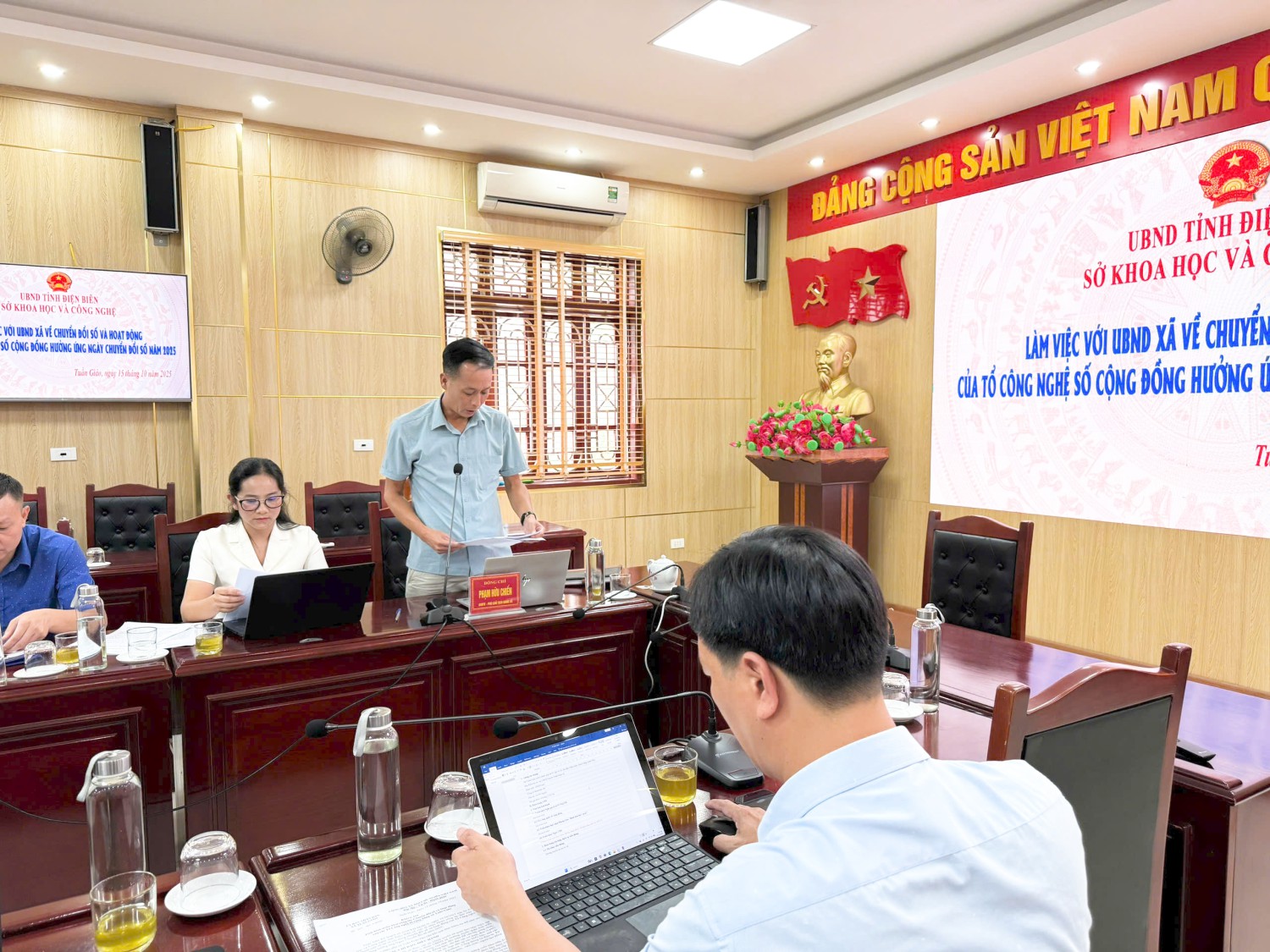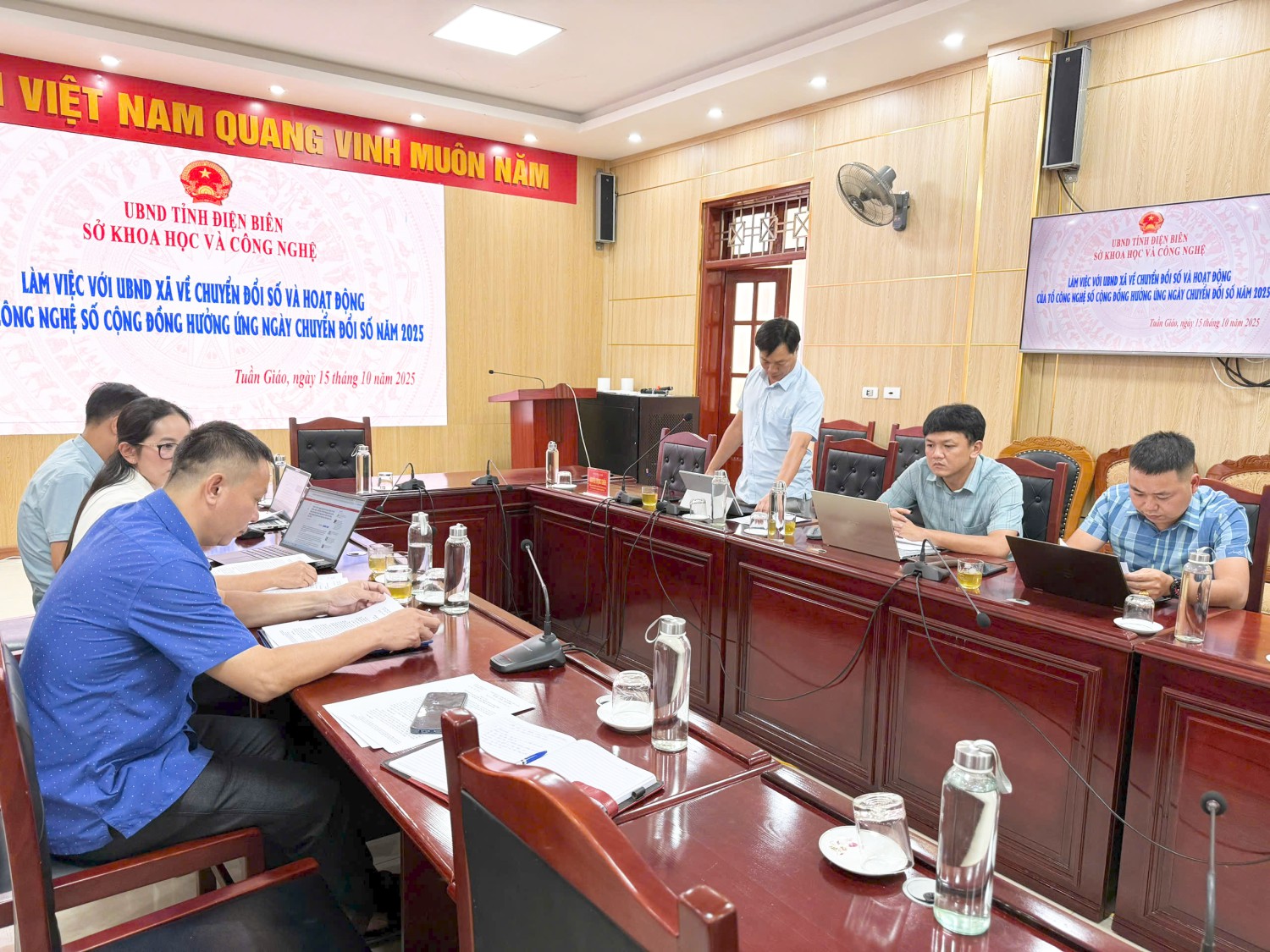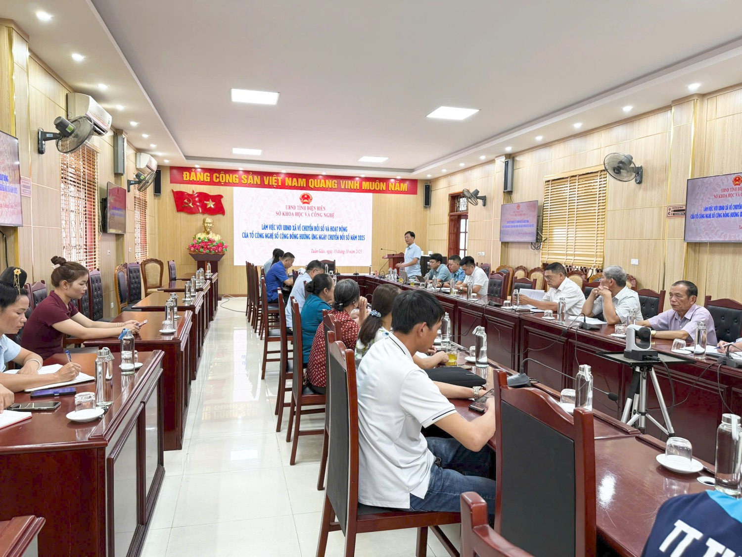Tiếp và làm việc với đoàn, về phía UBND xã Tuần Giáo, có đồng chí Phạm Hữu Chiến- UVBTV, Phó Chủ tịch UBND xã; Lãnh đạo Văn phòng HĐND&UBND xã; Phòng Văn hoá - Xã hội; Đại diện Tổ Công nghệ số cộng đồng xã Tuần Giáo; Đại diện Tổ Công nghệ số cộng đồng 40 khối, bản trên địa bàn xã