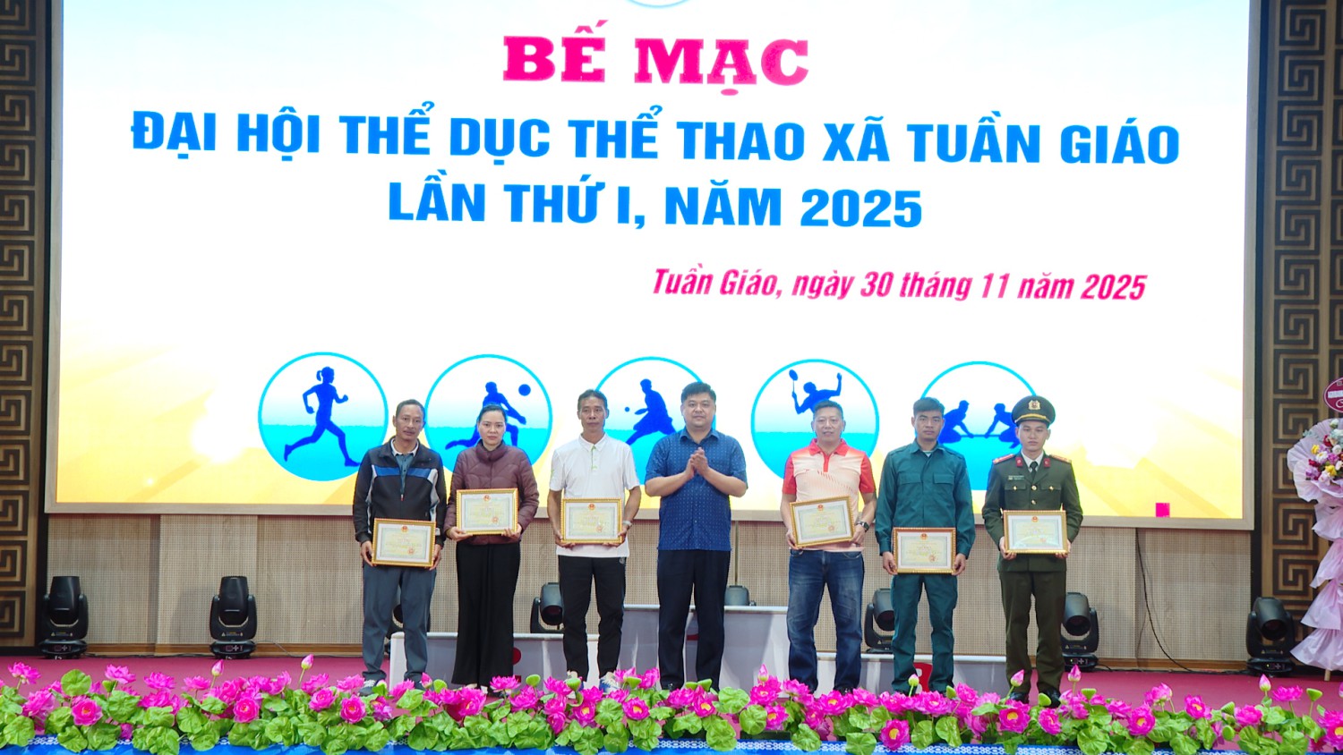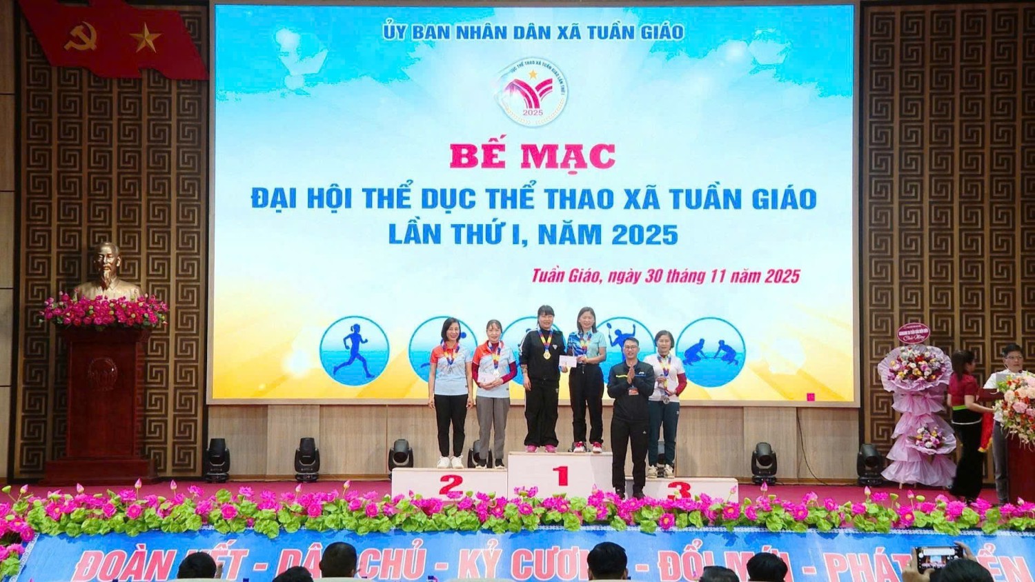Đại hội TDTT xã Tuần Giáo lần thứ I thành công tốt đẹp! Chiều ngày 30/11, UBND xã Tuần Giáo đã tổ chức Lễ bế mạc Đại hội Thể dục Thể thao xã Tuần Giáo lần thứ I, năm 2025. Sau 03 ngày tranh tài sôi nổi (từ 28/11–30/11), Đại hội Thể dục Thể thao xã Tuần Giáo lần thứ I đã chính thức khép lại trong không khí vui tươi, đoàn kết và đầy cảm xúc. Dự lễ bế mạc, đồng chí Quàng Văn Cương – Phó Bí thư Đảng uỷ, Chủ tịch UBND xã; Đồng chí Nguyễn Quyết Thắng-UVBTV, Phó Chủ tịch UBND xã, Trưởng Ban chỉ đạo- Ban tổ chức Đại hội; Lãnh đạo UBMTTQ Việt Nam xã; Thành viên Ban Chỉ đạo - Ban Tổ chức, các Tiểu ban giúp việc Đại hội; Đại diện lãnh đạo các cơ quan, đơn vị có trụ sở trên địa bàn xã; Trưởng khối, bản trên địa bàn xã; Các đoàn Vận động viên.